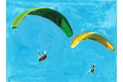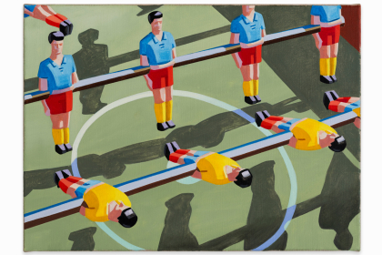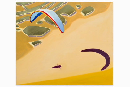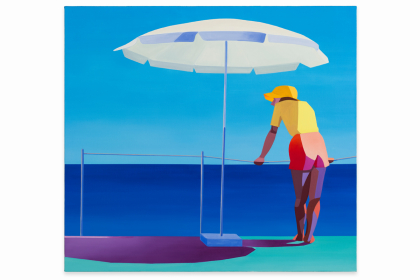 Therefore, each image is selected for a specific reason, whether it be a sensation, a reason linked to compositional or color-related notions, or an idea. Often a conceptual thread serves for the creation of a series of paintings, transforming into symbols the elements depicted in the image. This is the case with game, childhood, sports or signage, recurring themes in her painting and to which she gives a particular meaning. Language, through the creation of texts and titles, completes this aspect of her work.