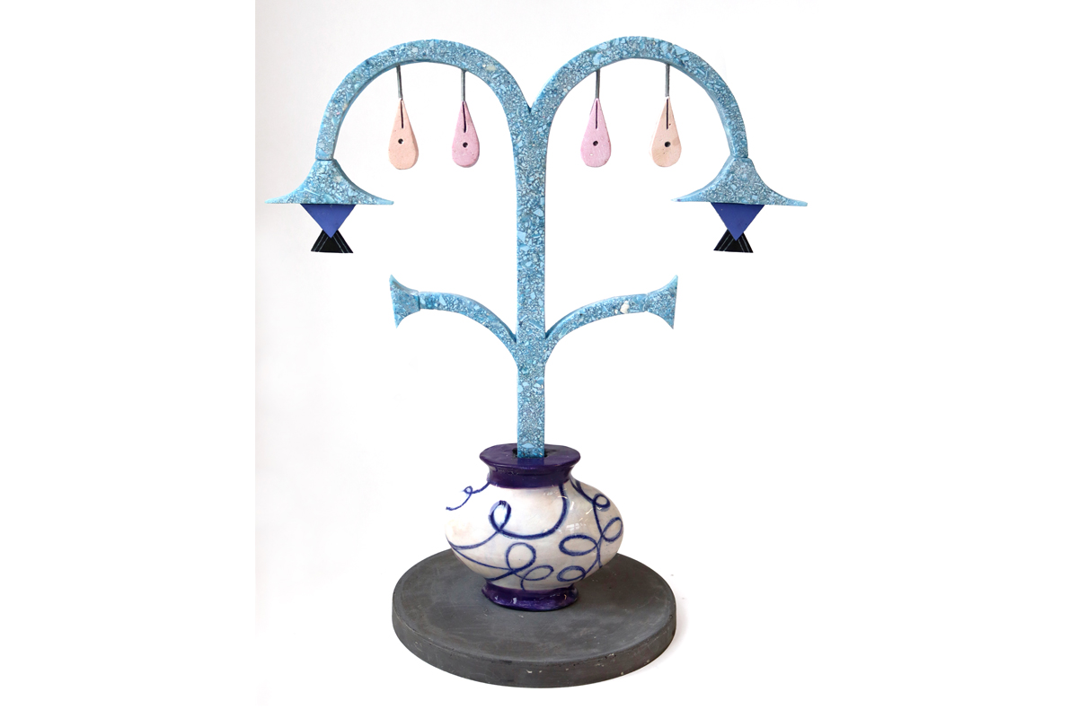 epoxy with pigmented pieces of resin, ceramics, acrylic resin, paint